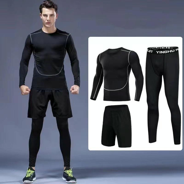 1. Breathable and quick-drying stretch fitness suit for men, comfortable moisture wicking, skin gets rid of sticky feeling. (Men's leggings + Men's long-sleeved top + Men's sweatpants))