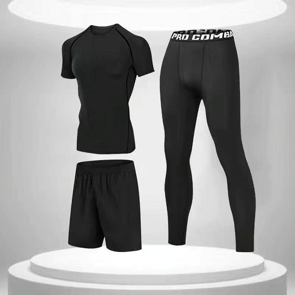3pcs / Set Men Gym Running Clothes Set Quick Dry Sports T Shirt, Size: XXXL(Phantom Black)