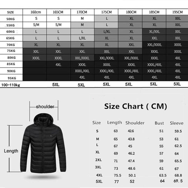 4 Zone BlackUSB Winter Electric Heated Jacket Warm Thermal Jacket, Size: XXXL