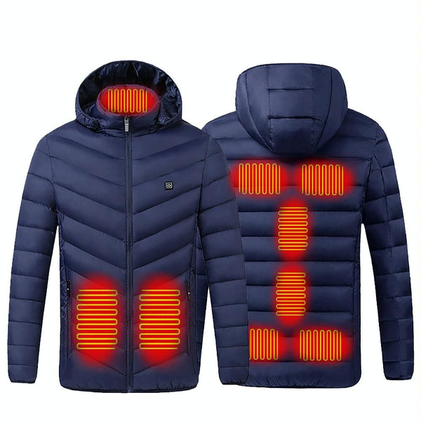 9 Zone Double Control Blue USB Winter Electric Heated Jacket Warm Thermal Jacket, Size: L