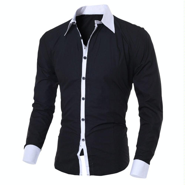 Casual Business Men Dress Long Sleeve Cotton Stylish Social Shirts, Size:XL(Blue)