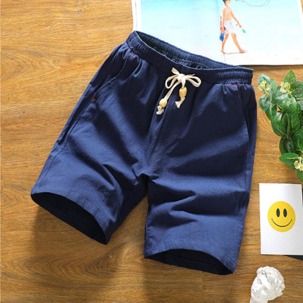 Casual Loose Cotton Linen Five-point Shorts, Size: XL(Navy Blue)