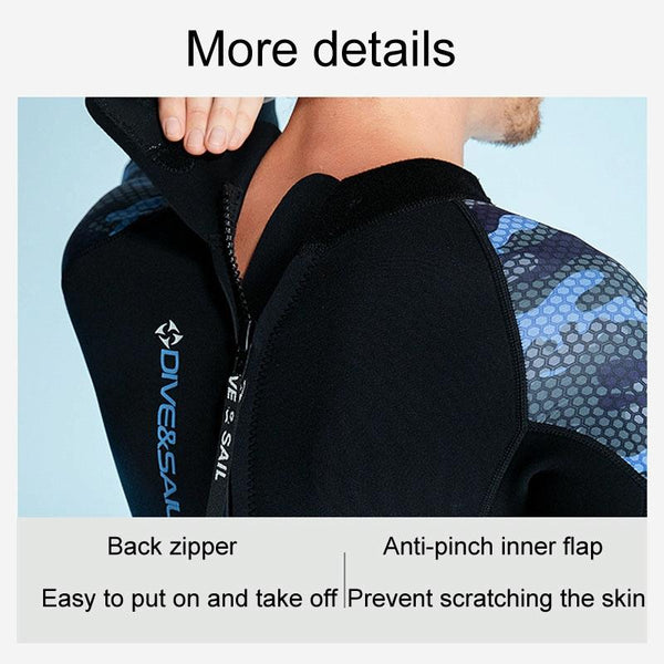 DIVE & SAIL 2mm Mens One Piece Long Sleeve Warm Wetsuit Surf Snorkeling Winter Wetsuit, Size: M(Black)