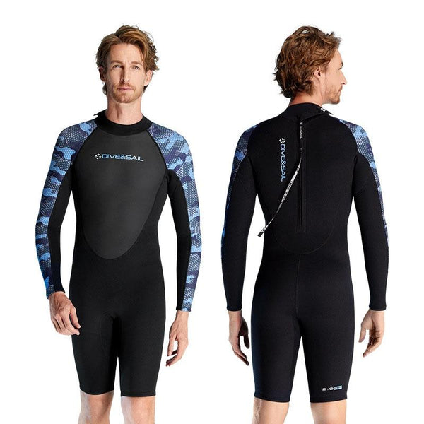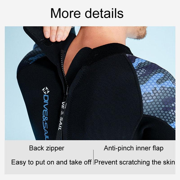 DIVE & SAIL 2mm Mens One Piece Long Sleeve Warm Wetsuit Surf Snorkeling Winter Wetsuit, Size: XL(Black)