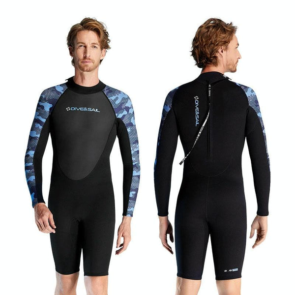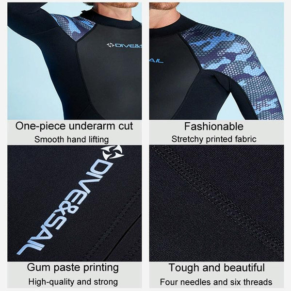 DIVE & SAIL 2mm Mens One Piece Long Sleeve Warm Wetsuit Surf Snorkeling Winter Wetsuit, Size: XXL(Black)