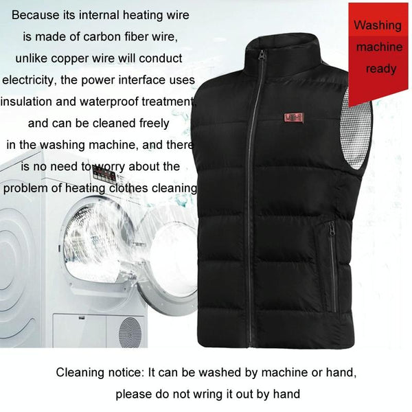 4. Because the internal heating wire is made of carbon fiber wire, unlike metal copper wire, it is not conductive, and the power interface is insulated and waterproof. It can be easily cleaned in the washing machine, and there is no need to worry about the problem of washing heating clothes
