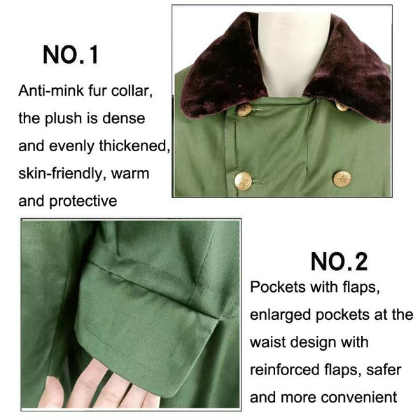 Long Civil Disaster Relief Cotton Coat Windproof Lengthened Cold-proof Fleece Thickened Cotton Coat, Color: Green
