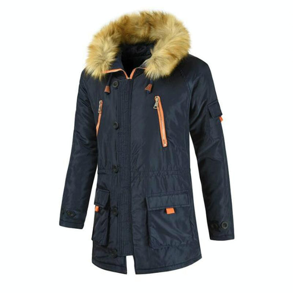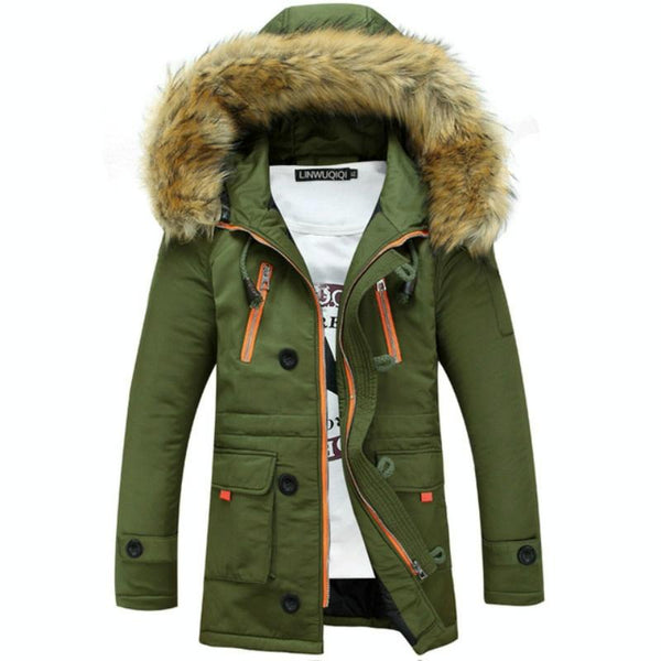 Long Section Cotton Suit Men Plus Velvet Thick Warm Jacket Large Fur Collar Coat Lovers Jacket, Size:L(Army Green)