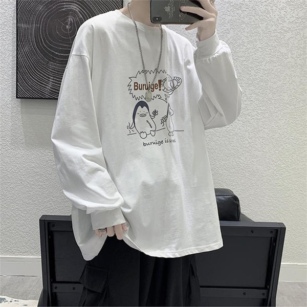Long-Sleeved T-Shirt Cartoon Printing Loose SweathershirtBase Shirt, Size: XL(White)
