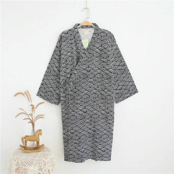 Man Pure Cotton Double-deck Bathrobe Kimono Pajamas Home Wear, Size: L(Gray)