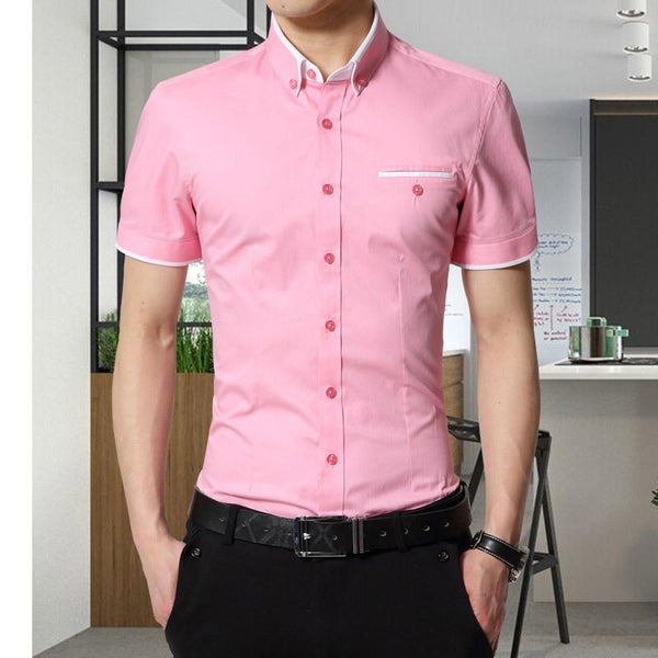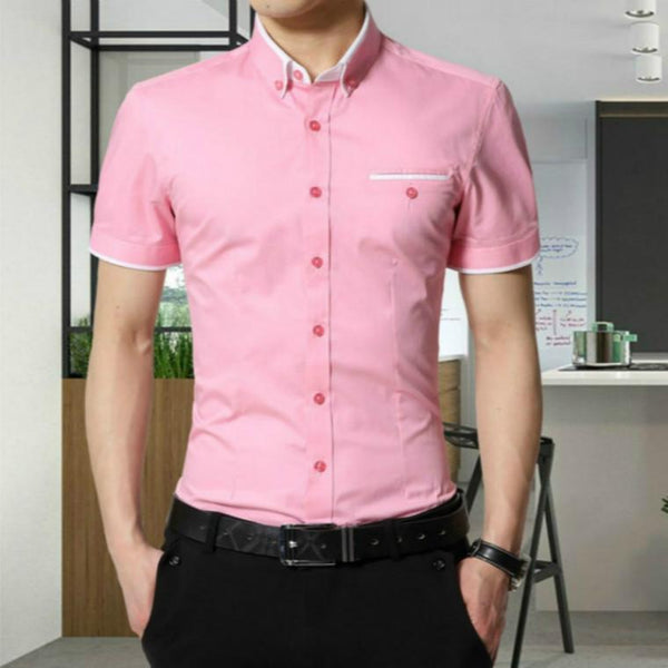 Men Business Shirt Short Sleeves Turn-down Collar Shirt, Size:L(Pink)