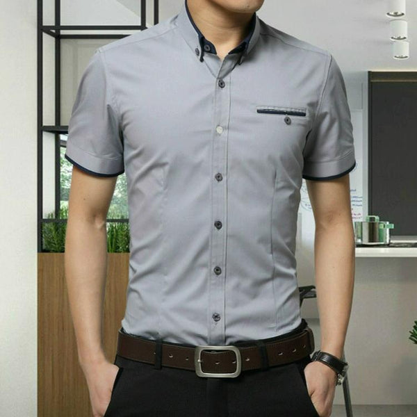 Men Business Shirt Short Sleeves Turn-down Collar Shirt, Size:XXXXL(Gray)
