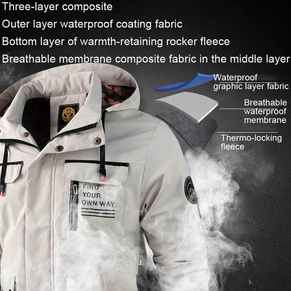 1. Three-layer composite, the outer layer of waterproof coating fabric, the bottom layer of warmth lock rocker fleece, the middle layer of breathable film composite fabrics