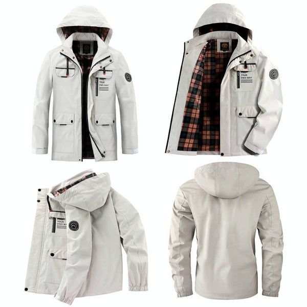 Men Casual Jacket Autumn And Winter Hooded Jacket, Size: XXXXL(White)