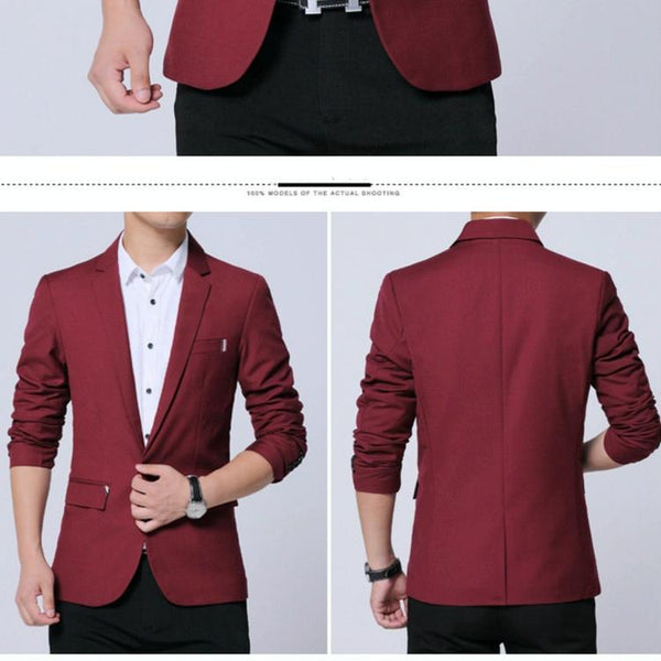 Men Casual Suit Self-cultivation Business Blazer, Size: 5XL( Wine Red)