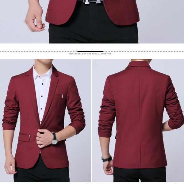 Men Casual Suit Self-cultivation Business Blazer, Size: S( Wine Red)