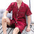 Men Large Size Ice Silk Short Sleeves and Shorts Two-Piece Pajama Set, Size:L(Jujube Red)