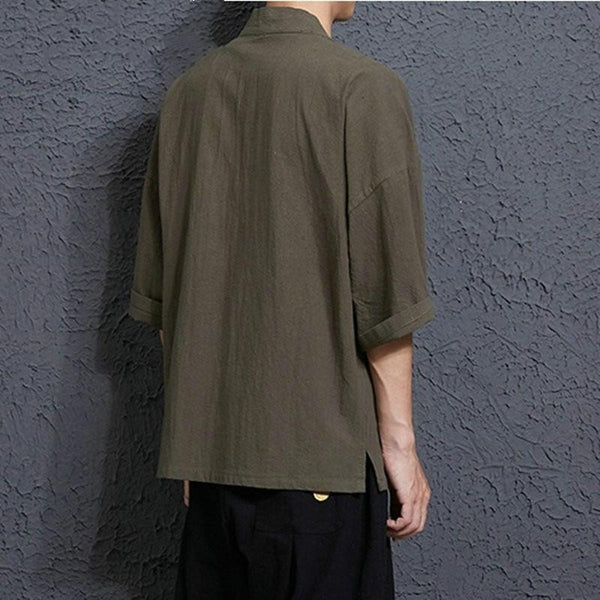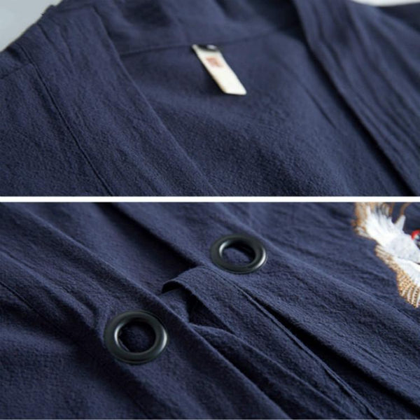 Men Loose Embroidery Hanfu Robe Cardigan, Size:L(Green)