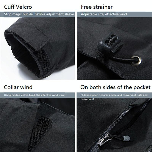 Men Outdoor Waterproof Jacket With Detachable Inner Warm Fleece for Camping Travel, Size: XXL(Black)