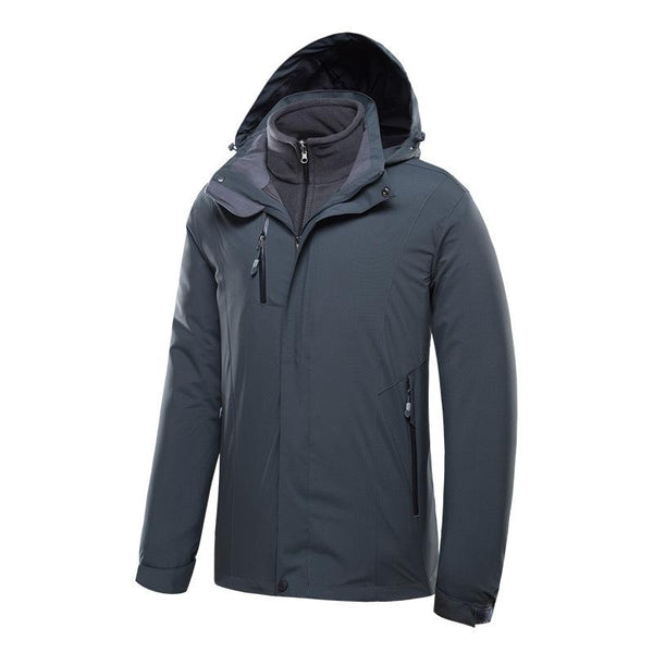 Men Outdoor Waterproof Jacket With Detachable Inner Warm Fleece for Camping Travel, Size: XXXXXXXL(Gray)