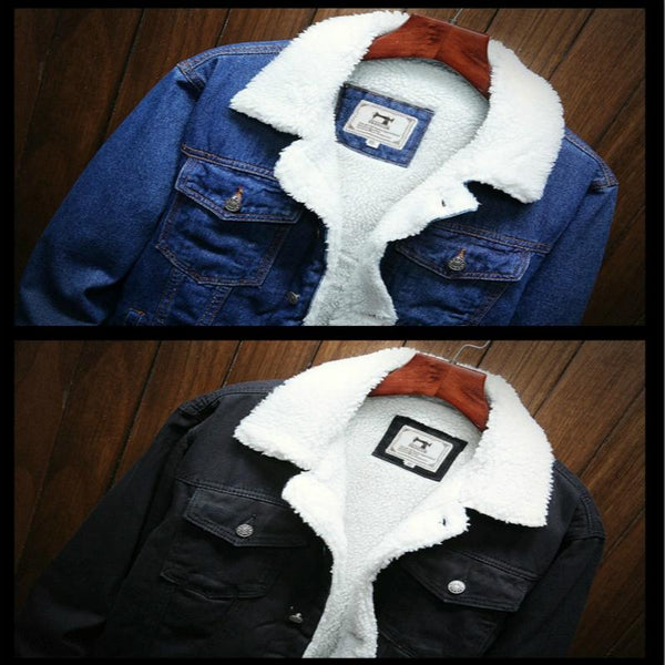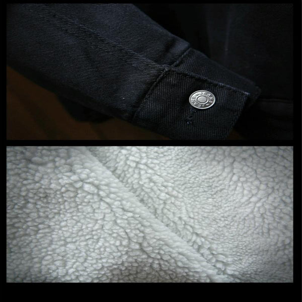 Men Winter Wool Liner Jean Jackets Outerwear Warm Denim Coats, Size:XL(Black)