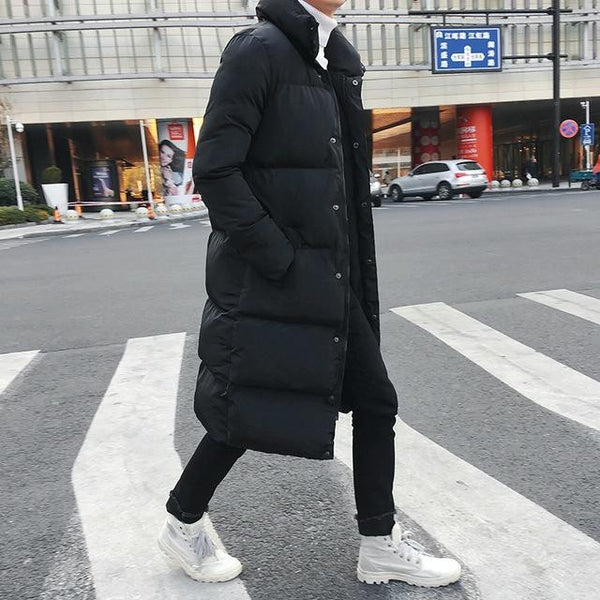 Mens Long Down Jacket Coat Winter Parkas Thick Warm Slim Fit Male Overcoat, Size:XXXXL(Black)