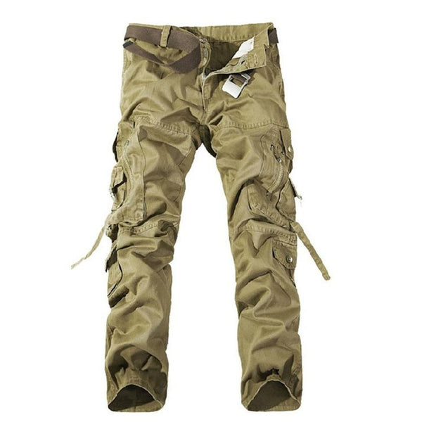 Mens Multi-Pocket Cotton Overalls Casual Sports Pants, Size: 31(Khaki)