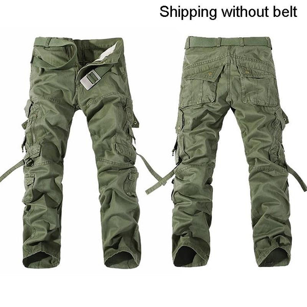 Mens Multi-Pocket Cotton Overalls Casual Sports Pants, Size: 33(Clay Army Green)