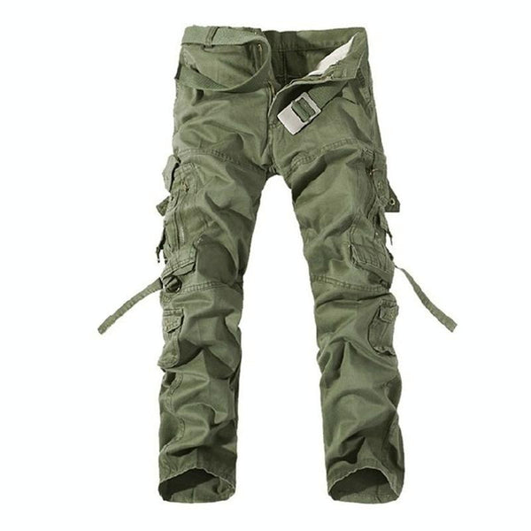 Mens Multi-Pocket Cotton Overalls Casual Sports Pants, Size: 33(Grass Army Green)