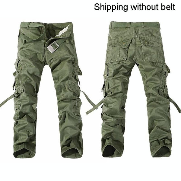 Mens Multi-Pocket Cotton Overalls Casual Sports Pants, Size: 33(Khaki)