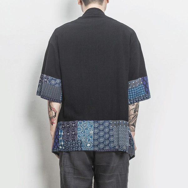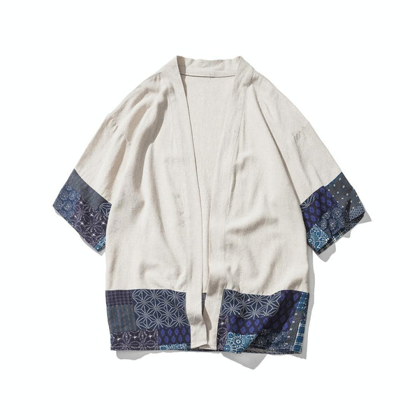 Retro Hanfu Seven-quarter Sleeve Cotton Linen Solid Stitching Youth Men Cardigan Coat, Size:XL(White)