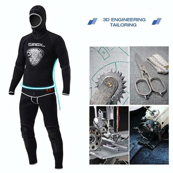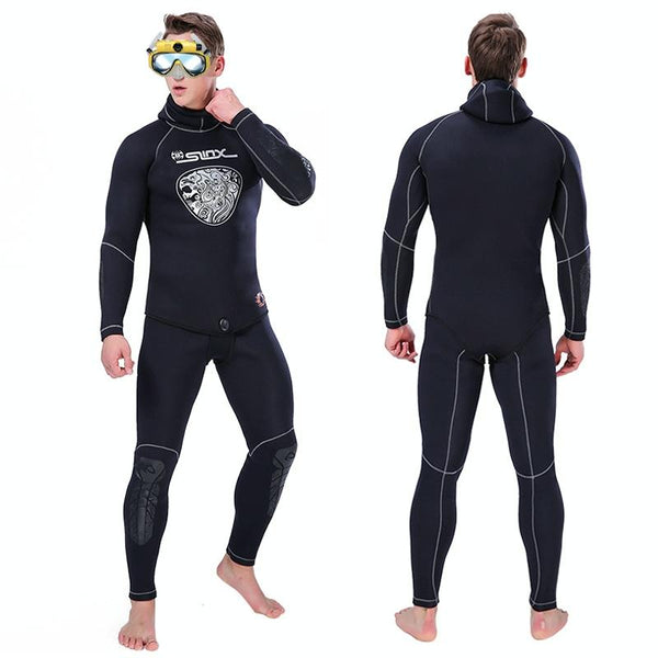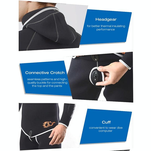 SLINX 1301 2 in 1 5mm Neoprene Super Elastic Wear-resistant Warm Long-sleeved Split Wetsuit Set for Men, with Hood, Size: L