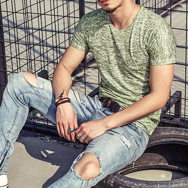 Tops Tees Casual Short Sleeve Pure T-shirts Clothes for Men, Size:L(Coffee)