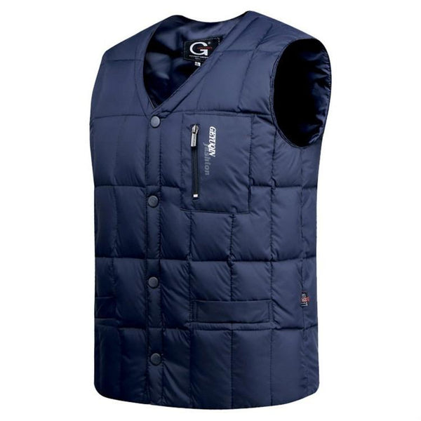 White Duck Down Jacket Vest Men Middle-aged Autumn Winter Warm Sleeveless Coat, Size:XXL(Blue)