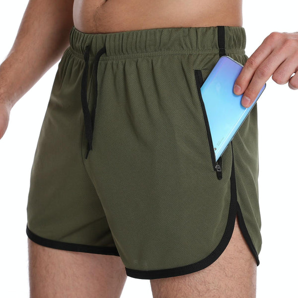 XL Three Pants Men Gym Shorts Quick Dry Swimming Trunks(Army Green)