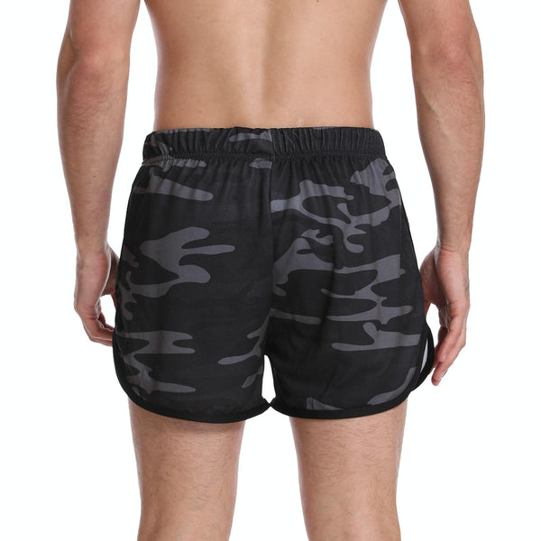 XL Three Pants Men Gym Shorts Quick Dry Swimming Trunks(Black Camouflage)