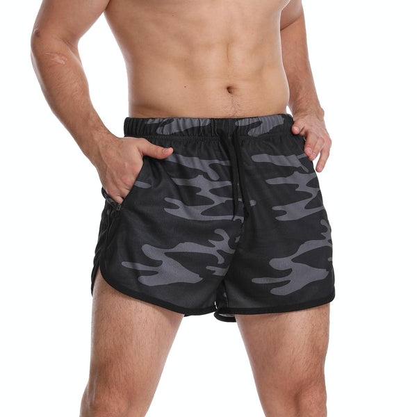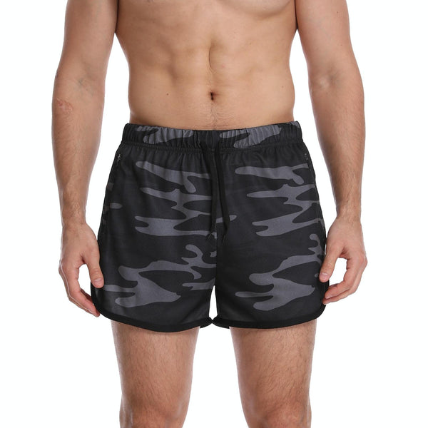 XXXL Three Pants Men Gym Shorts Quick Dry Swimming Trunks(Black Camouflage)