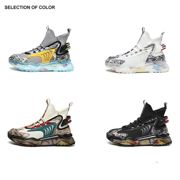 1925 Flying Knit Breathable High-Top Sports Men Shoes Clunky Sneaker, Size: 46(Beige)
