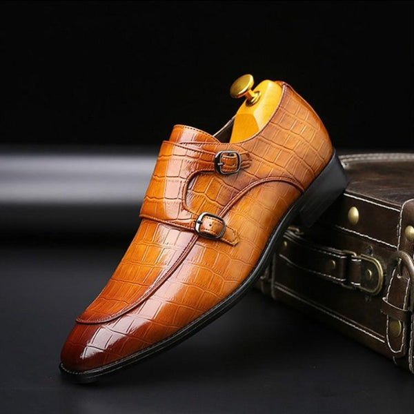 Crocodile Pattern Business Flat Bottom Leather Formal Shoes, Size:40(Yellow)