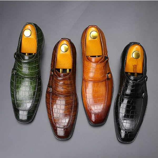 Crocodile Pattern Business Flat Bottom Leather Formal Shoes, Size:41(Green)