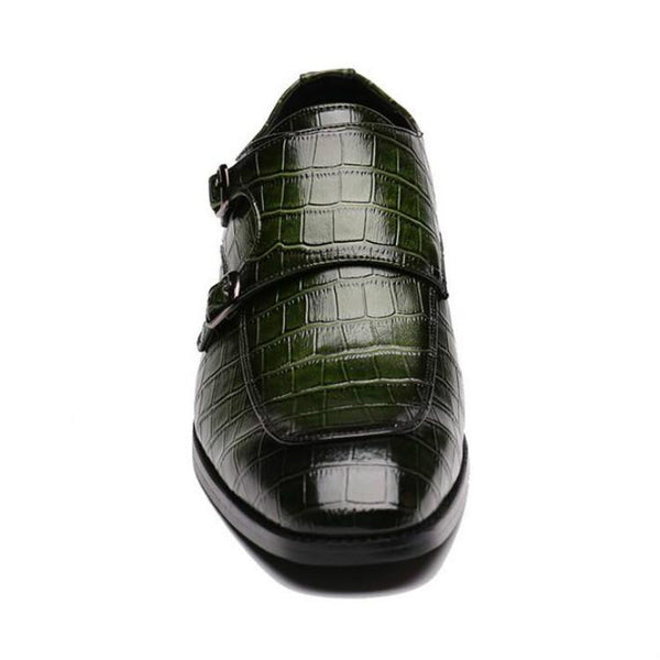 Crocodile Pattern Business Flat Bottom Leather Formal Shoes, Size:45(Green)