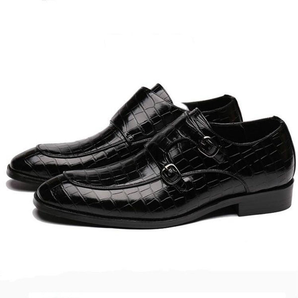Crocodile Pattern Business Flat Bottom Leather Formal Shoes, Size:46(Black)