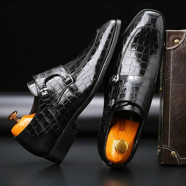 Crocodile Pattern Business Flat Bottom Leather Formal Shoes, Size:47(Black)
