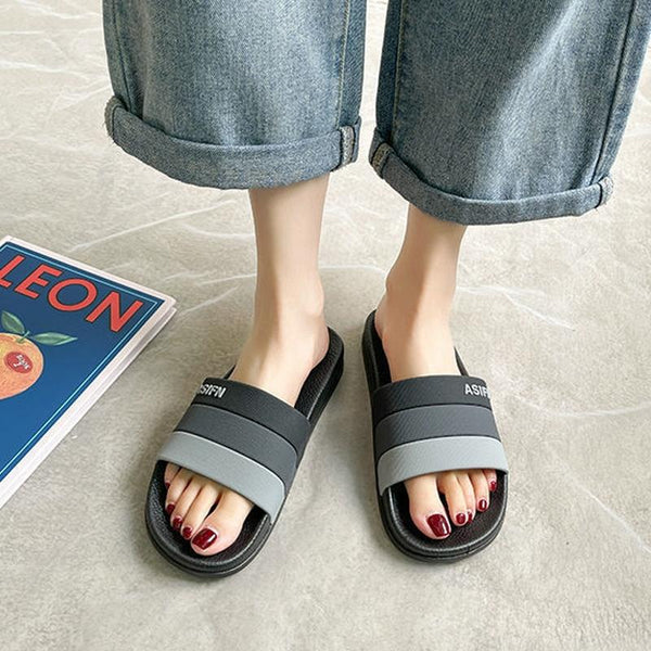 Men and Women Slippers Summer Non-slip Couples Go Out Home One Word Slippers, Size: 40-41(Three Rods-Black)