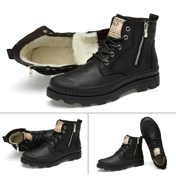 Men Boots Leather Martin Boots Men England High Men Shoe, Size:38(Black+Cotton)