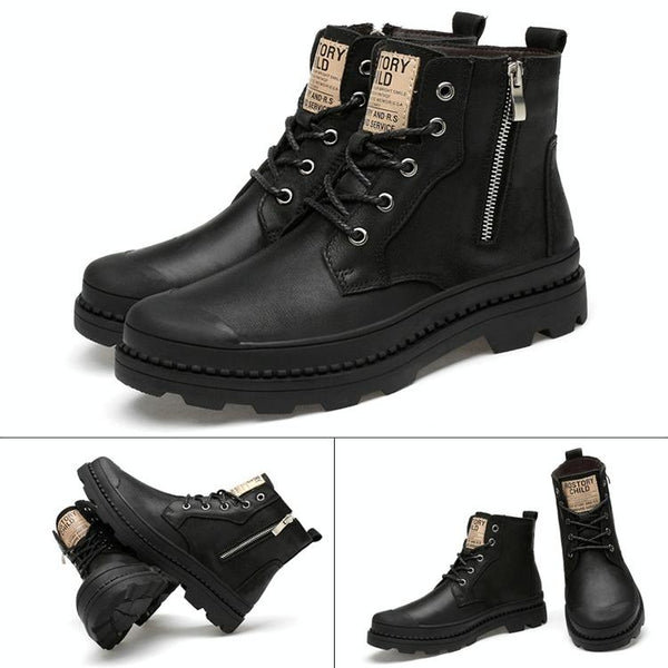 Men Boots Leather Martin Boots Men England High Men Shoe, Size:39(Black Nude Shoes)