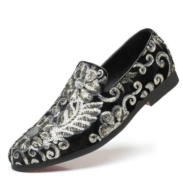 Men Casual Fashion Glitter Shoe Slip-on Shoes Loafers, Size:48(Black)