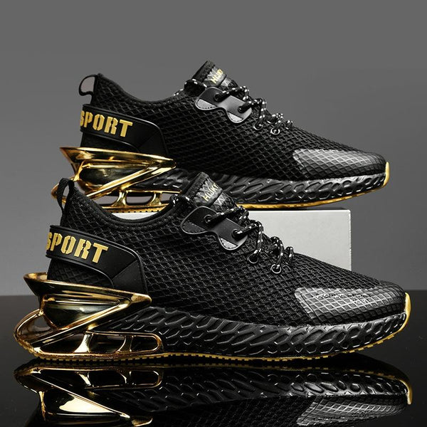 Men Casual Sneakers Tide Luxury Shoes Trainer Breathable Running Shoes, Size: 39(Black Gold)