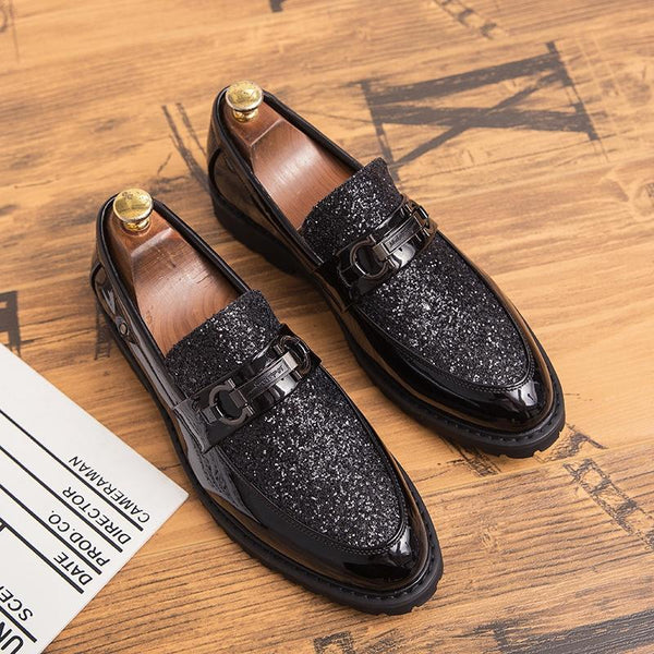 Men Fashion Thick Bottom Pointed Formal Business Leather Shoes, Shoe Size:40(Black)