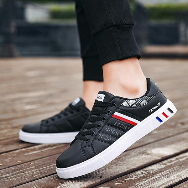 Men Leather Breathable Flat Shoes Versatile Casual Sneakers, Size: 39(Black)